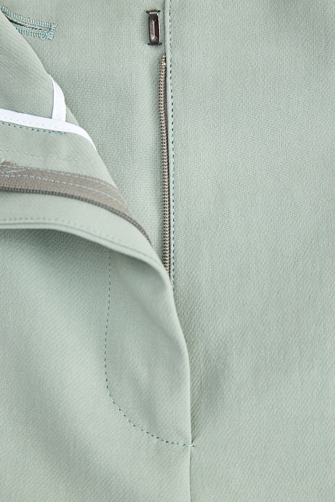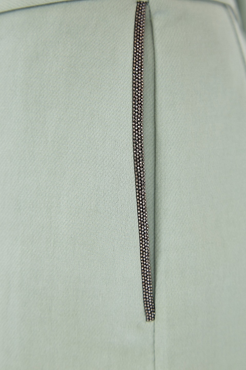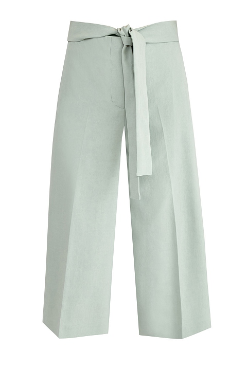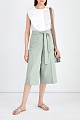 Расклешенные от бедра бермуды от Fabiana Filippi выполнены из держащего форму хлопкового твила в пастельном оттенке «аквамарин». Фирменный стиль подчеркивает мерцающая вышивка ручной работы на прорезных карманах по бокам. Модель на высокой талии дополнена широким поясом-лентой, который визуально структурирует силуэт. Вытачки обеспечивают посадку по фигуре. Сделано в Италии.