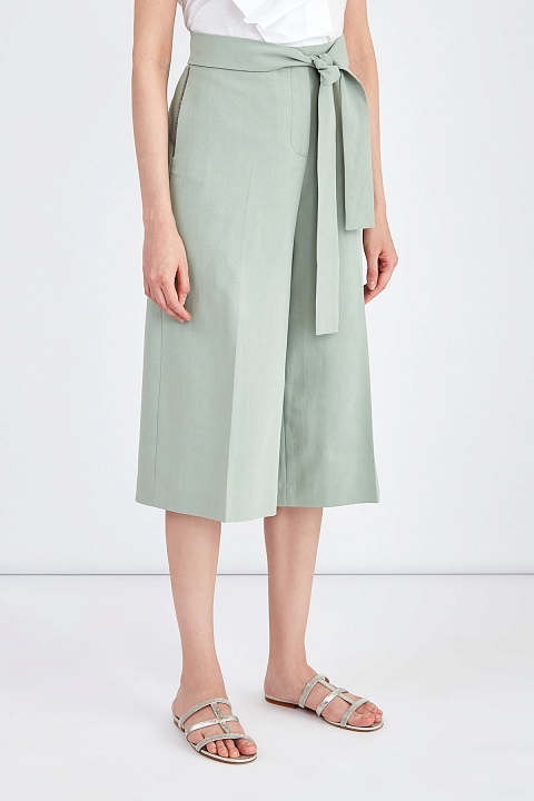 Бермуды из хлопкового твила с поясом-лентой на завышенной талии