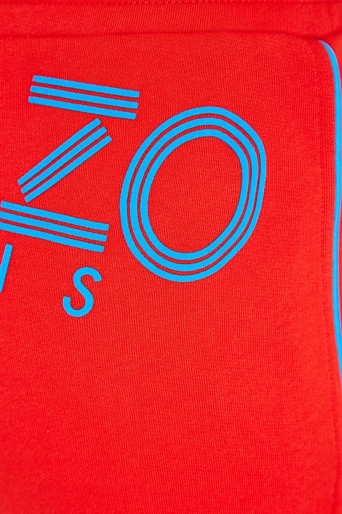 Короткие шорты от Kenzo выполнены в насыщенном алом оттенке из хлопкового футера. Контрастные акценты в образ вносят макро-монограмма на спинке и тонкие полоски тесьмы по кромкам изделия. Асимметричный крой с удлиненными планками на спинке и вставками-лампасами по бокам создает образ в стилистике эпохи 90-х. Эластичный притачной пояс завершает дизайн.