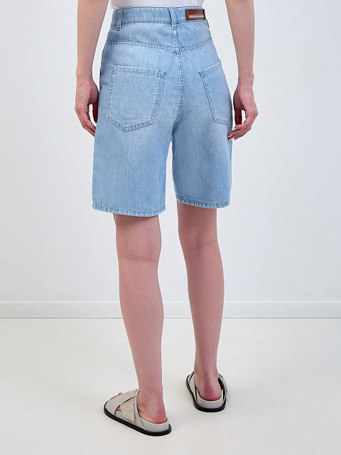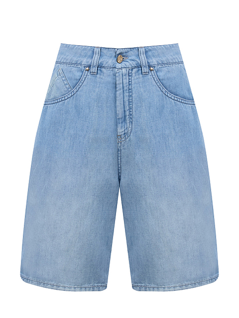 Джинсовые шорты из хлопка и льна делаве с кожаной нашивкой