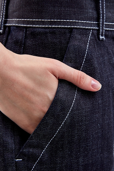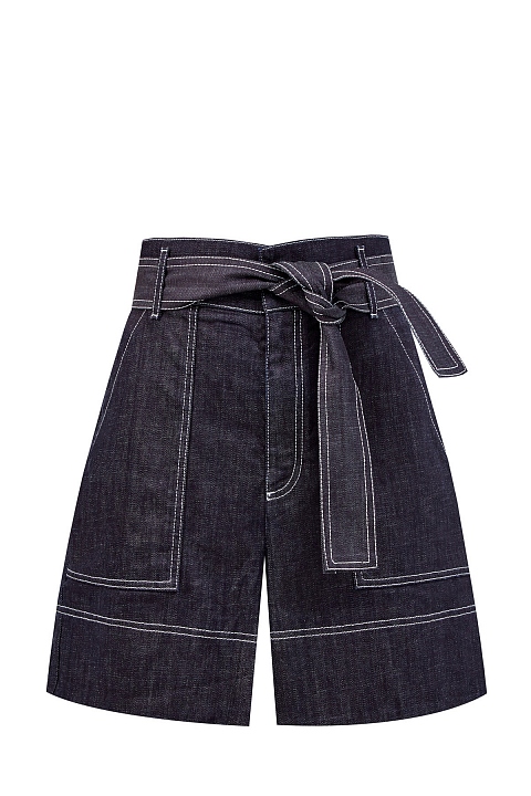 Джинсовые шорты с контрастными строчками и поясом