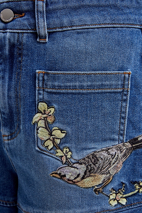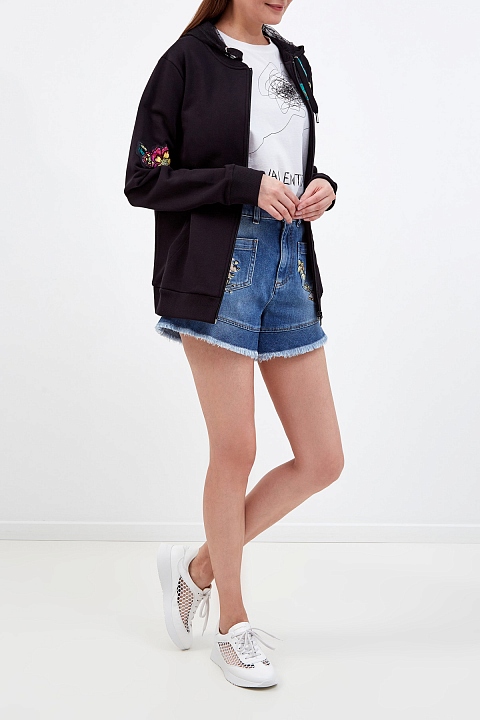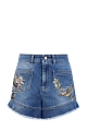 Шорты из эластичного денима с фактурной вышивкой и бахромой