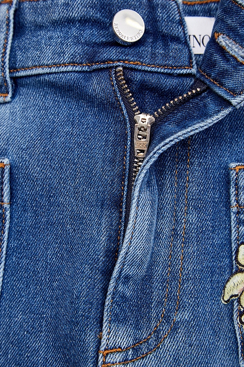 Короткие женские шорты от REDValentino выполнены из плотного денима с добавлением эластана. Изделие в классическом светло-синем цвете украшено фактурной вышивкой с природными мотивами. Слегка расклешенный нижний край с короткой густой бахромой придает образу расслабленный акцент. Детали: три накладных кармана, нашивка оттенка индиго на спинке, застежка на пуговицу и молнию на передней планке.