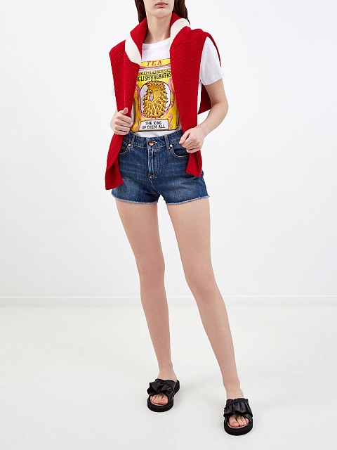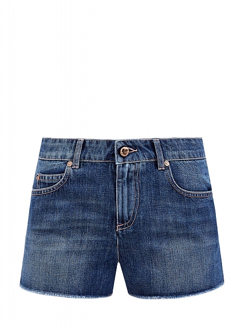 Короткие шорты из денима с бахромой и нашивкой «пуэн-деспри»