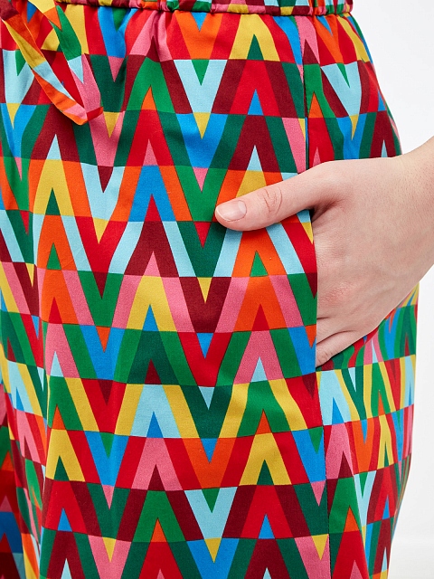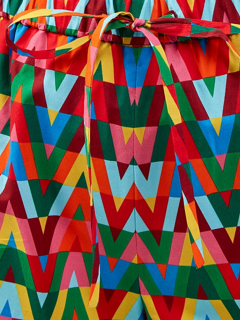 Эффектные женские шорты от Valentino выполнены из шелкового твила Crepe de Chine с атласной текстурой. Поверхность изделия декорирована принтом V Optical Valentino Archive 1973 из архивов бренда. Элемент расслабленного пижамного стиля в образ вносит эластичный пояс на регулируемой кулиске. Сделано в Италии.