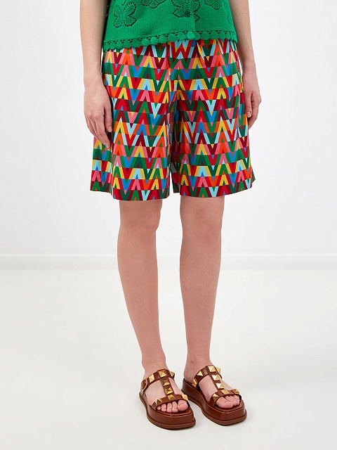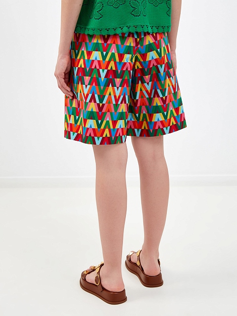 Шорты из шелковой ткани Crepe de Chine с принтом V Optical