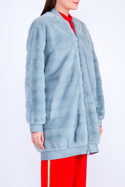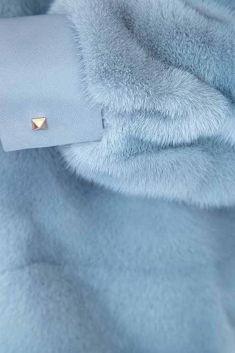 Шуба-бомбер из меха норки и кожи ягненка голубого оттенка