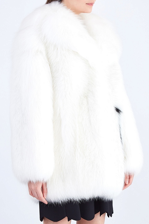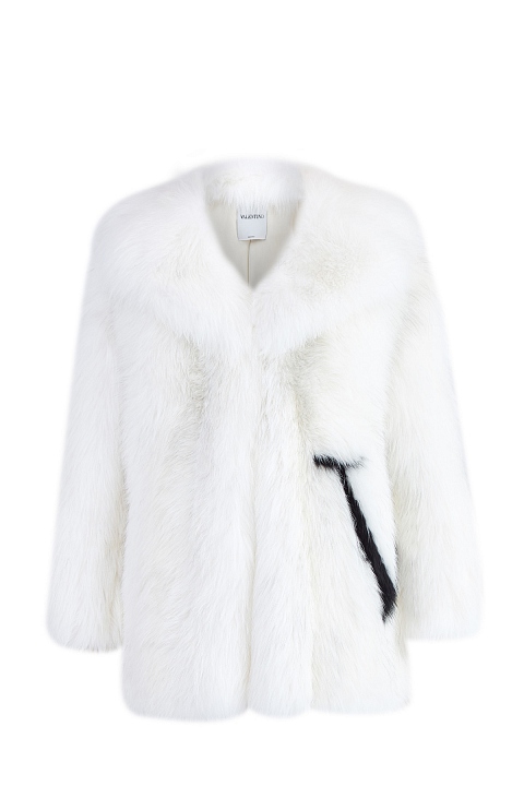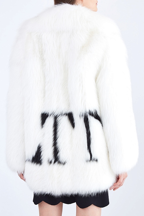 Шуба силуэта oversize из белого меха песца с логотипом VLTN