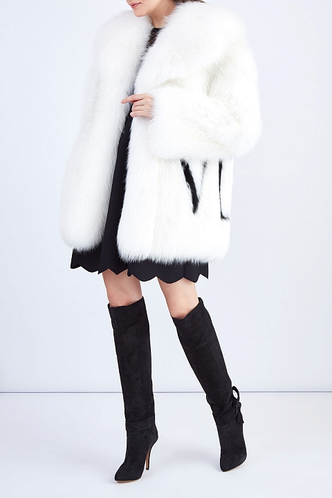 Эффектная шуба прямого кроя из коллекции осень-зима от Valentino выполнена из объемного длинноворсового меха песца, теплого и устойчивого к влажности. Изделие создано в монохромной черно-белой гамме, которая раскрывает богатую фактуру материала. Модель с заимствованным у классического пиджака воротником с лацканами декорирована контрастным макро-принтом VLTN в фирменном стиле. Внутренняя подкладка из струящегося итальянского шелка обеспечивает посадку по фигуре. Застежка на потайные крючки завершает дизайн. Сделано в Италии.