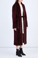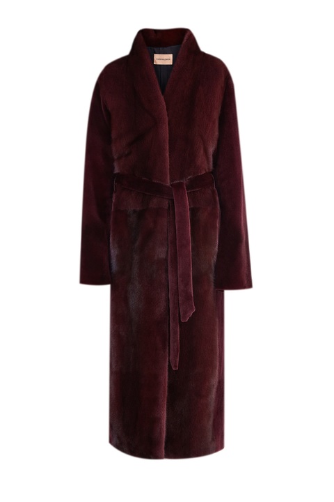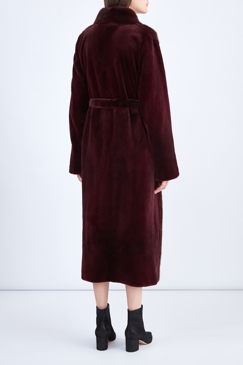 Шуба из меха стриженной финской норки в винном оттенке с поясом