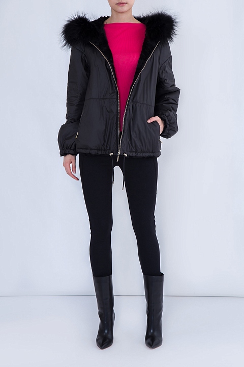 Укороченная шуба с отделкой из густого меха лисы