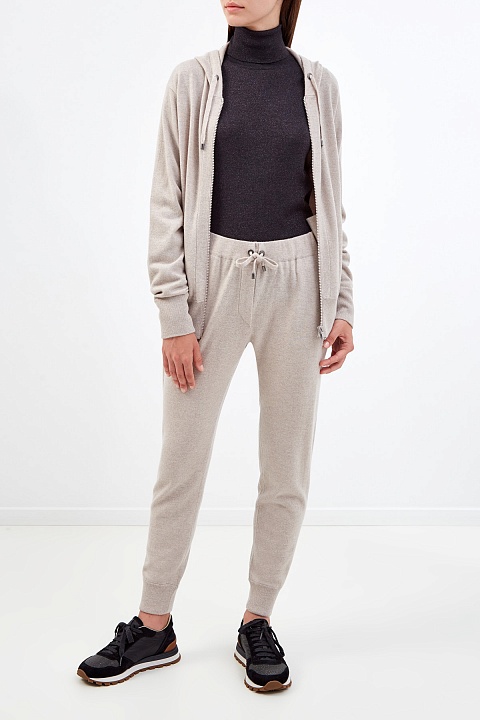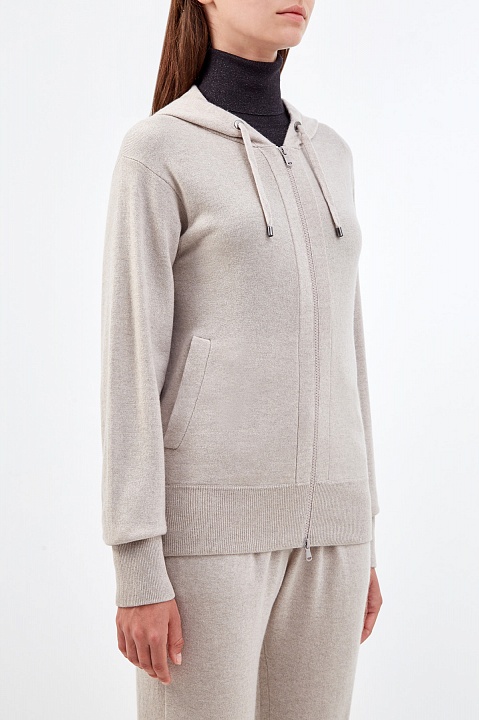 Толстовка из кашемировой пряжи с капюшоном на кулиске