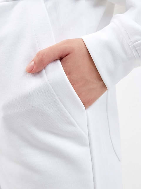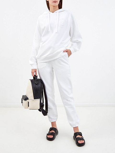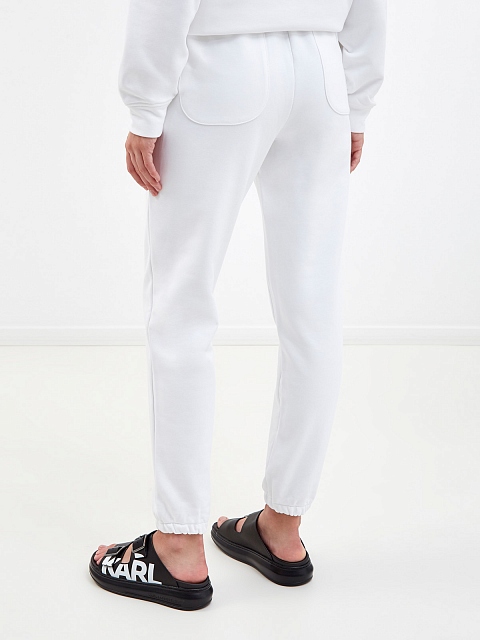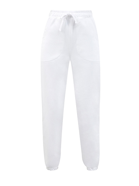 Брюки-джоггеры в спортивном стиле от Ermanno Firenze выполнены в белом цвете из мягкого хлопка. Модель с поясом на кулиске обеспечивает максимальный комфорт и идеально подходит для создания расслабленных образов. Фирменный штрих — вышитый логотип бренда на спинке. Детали: эластичная отделка кромок, прорезные и накладные карманы.