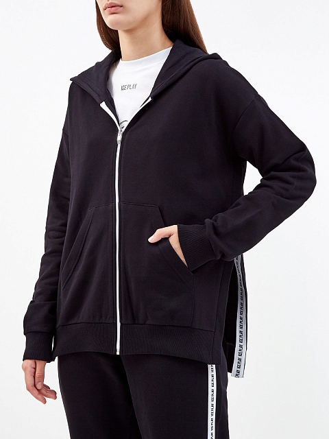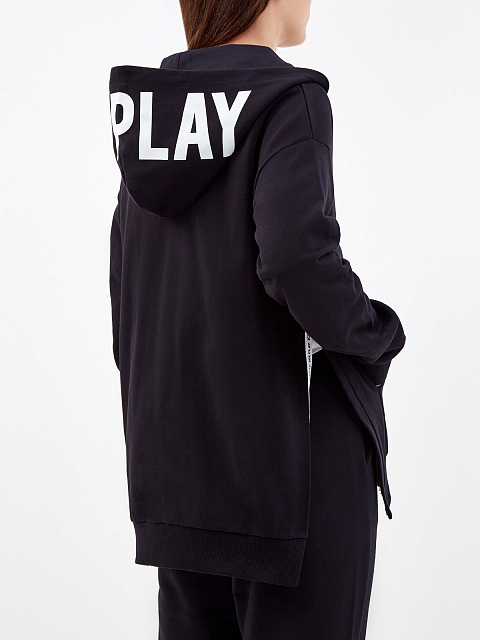 Толстовка из хлопкового футера с разрезами и макро-принтом