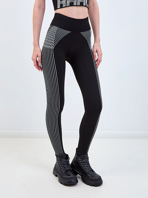 Спортивные леггинсы с принтом и широким эластичным поясом