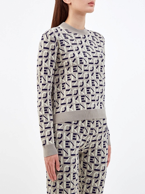 Женский свитшот в песочной гамме от Kenzo создан из плотной хлопковой пряжи, синтетические волокна в составе ткани надолго сохраняют форму изделия. Расслабленный крой и эластичная отделка кромок обеспечивают комфортную посадку по фигуре. Фирменный штрих — жаккардовый принт с монограммой бренда по всей поверхности. Детали: круглый вырез горловины, длинные рукава.