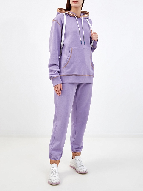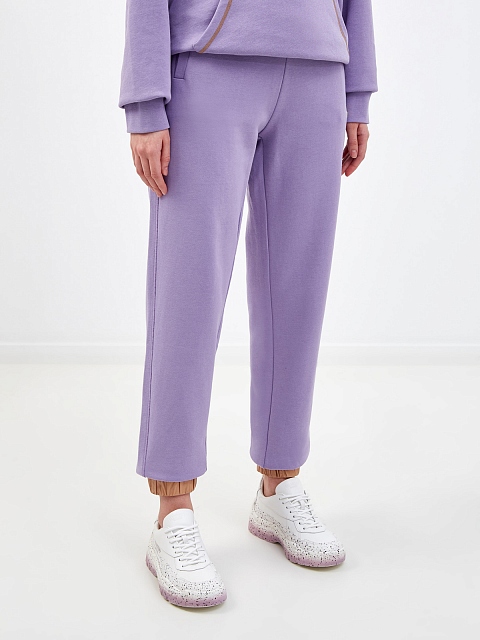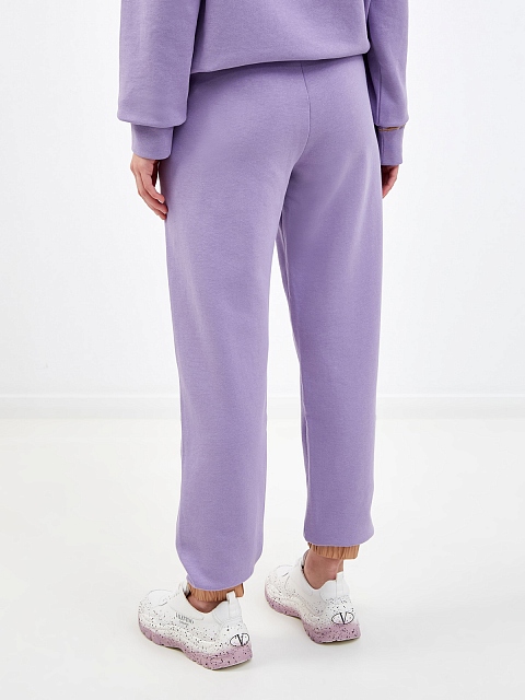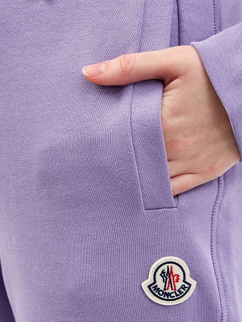 Комфортные спортивные брюки от Moncler выполнены из натурального хлопка нежного лавандового оттенка. Модель с мягкой внутренней поверхностью дополнена эластичным поясом и манжетами из нейлона laqué контрастного цвета. Изделие идеально сочетается с координированной толстовкой с капюшоном и базовыми футболками.