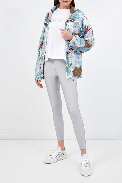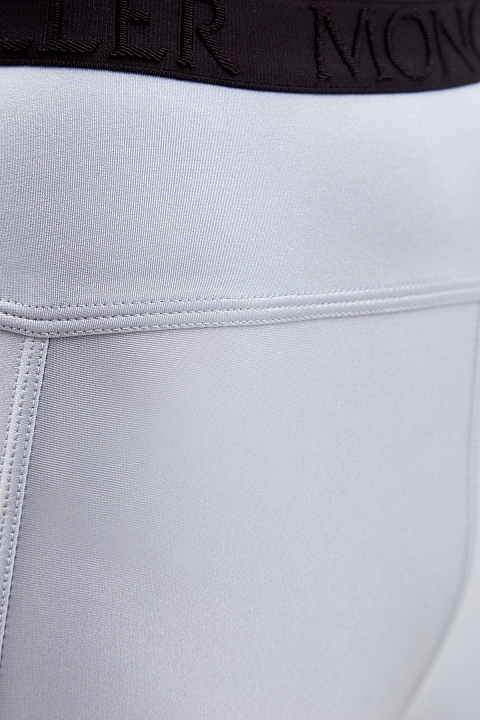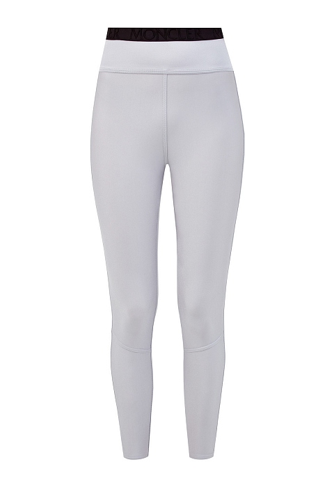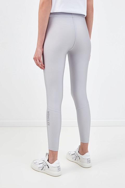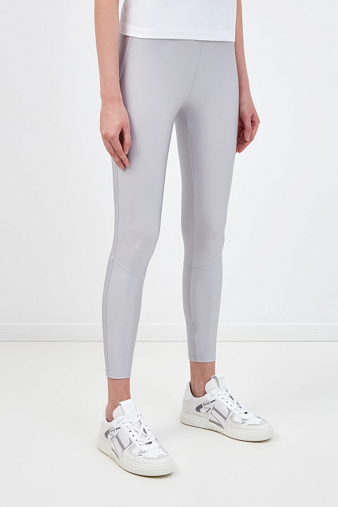 Леггинсы от Moncler выполнены из технического джерси — гладкой и эластичной ткани с переливчатым эффектом по поверхности. Благородный жемчужно-серый оттенок делает модель универсальной для спортивных и повседневных образов. Динамичные линии кроя подчеркивают объемные швы. Детали: пояс с монограммой, слегка укороченный крой.