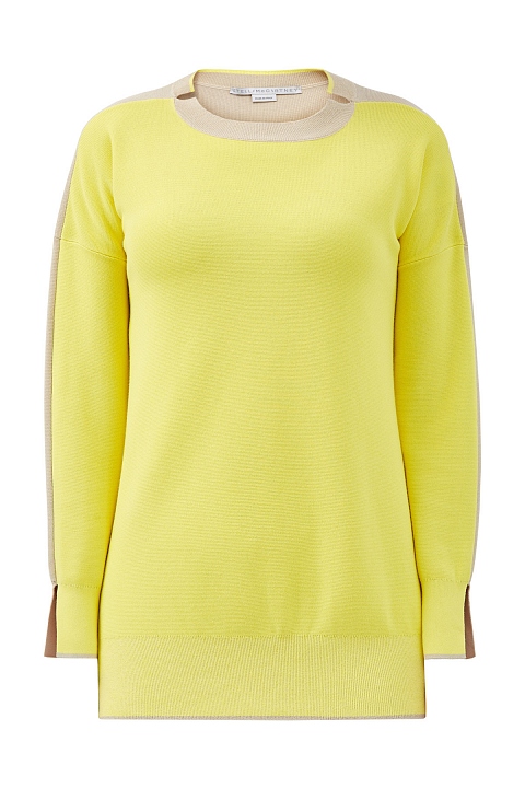 Струящийся джемпер от Stella McCartney выполнен в технике colorblock. Натуральная вискоза, получаемая из древесного волокна, поступает на фабрики только из специально выращенных и контролируемых человеком лесов Швеции, что позволяет сберечь численность деревьев. Модель в расслабленном стиле с комфортным силуэтом oversize и декоративными разрезами — характерной чертой коллекций бренда.