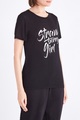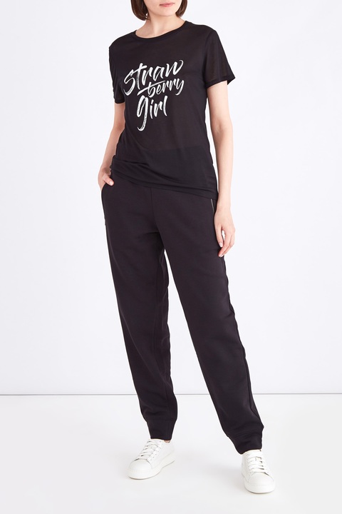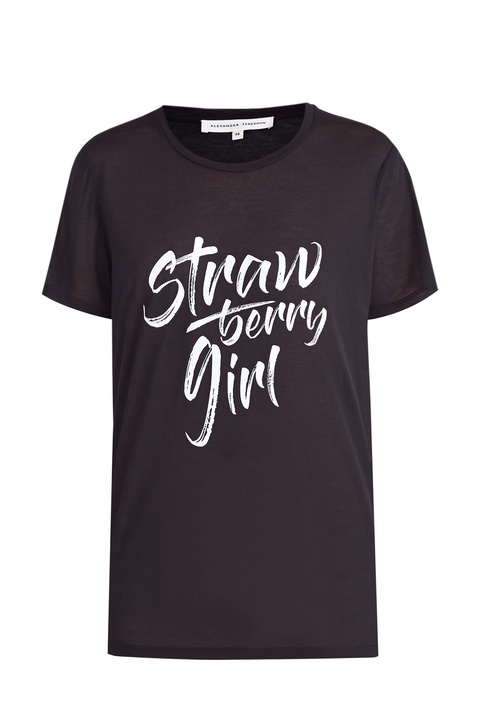 Комфортная женская футболка прямого кроя из круизной коллекции бренда Alexander Terekhov выполнена из нежного модала в монохромном черном цвете. Передняя планка декорирована контрастной аппликацией белого тона с надписью «Strawberry Girl», отражающей философию бренда. Круглая пройма горловины окантована эластичной тесьмой, а кромки рукавов и нижний край закрыты объемным швом двойной иглой. Сделано в России.