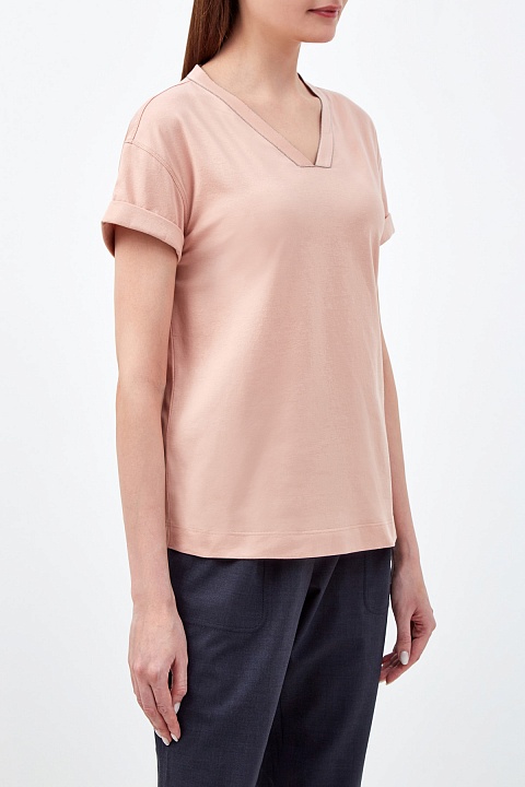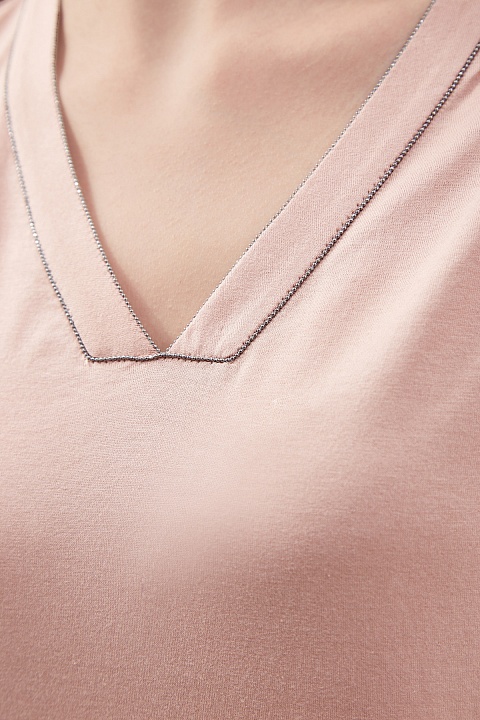 Хлопковая футболка с мерцающим V-образным вырезом