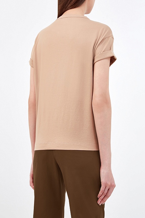 Футболка из хлопка джерси с вышивкой и отворотами на рукавах