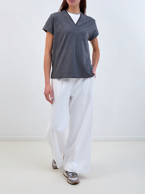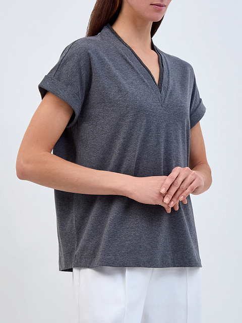 Футболка с V-образным вырезом и ювелирной окантовкой Мониль