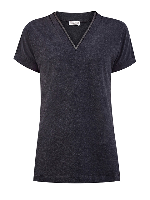 Футболка с V-образным вырезом и ювелирными цепочками Мониль