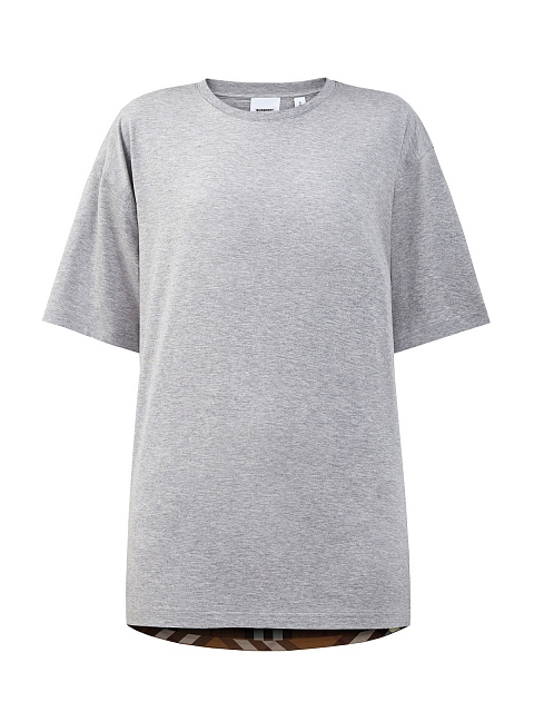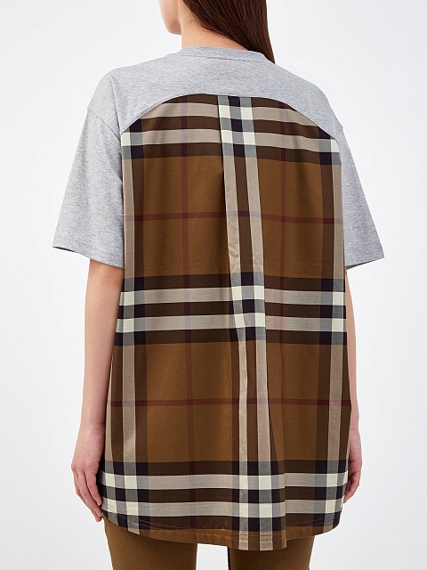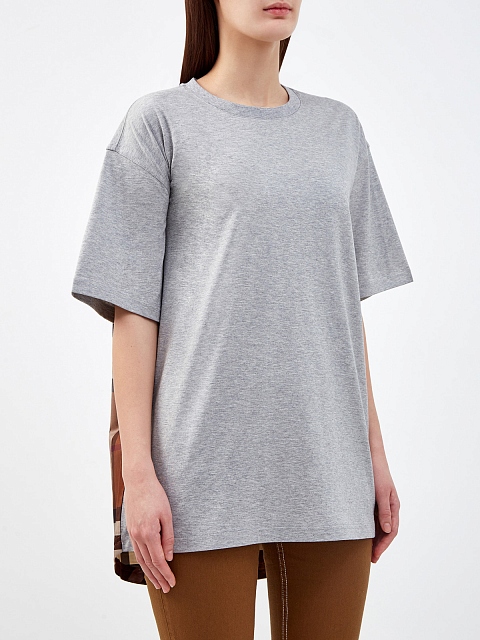 Асимметричная футболка из хлопка с клетчатой вставкой на спинке