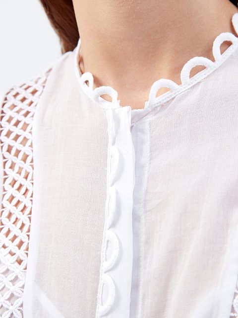 Легкий топ Joan из круизной коллекции Charo Ruiz Ibiza создан из тонкого дышащего хлопка. Вышитая отделка и оборки из гипюра подчеркивают романтичный стиль изделия, объемные рукава-фонарики и широкие завязки по нижнему краю делают модель идеальной для летнего сезона. Детали: потайная застежка на пуговицы, эластичные манжеты.