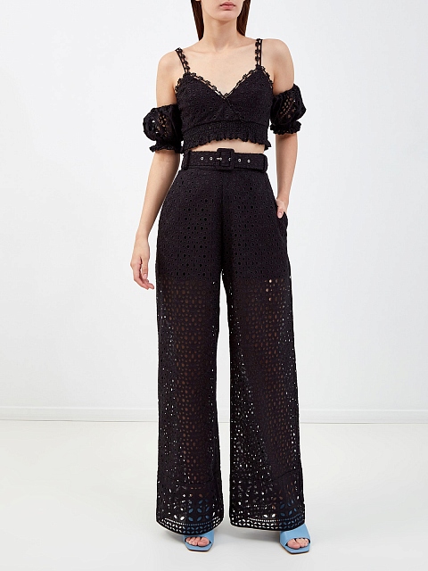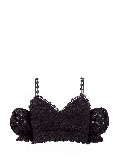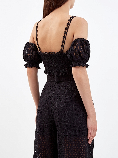 Романтичный укороченный топ Silvana из круизной коллекции Charo Ruiz Ibiza выполнен в черном цвете. Дышащий материал на основе хлопка и кружевная отделка broderie anglaise делают модель идеальной для составления пляжных или повседневных образов. Открытые плечи и тонкие бретели завершают женственный дизайн.