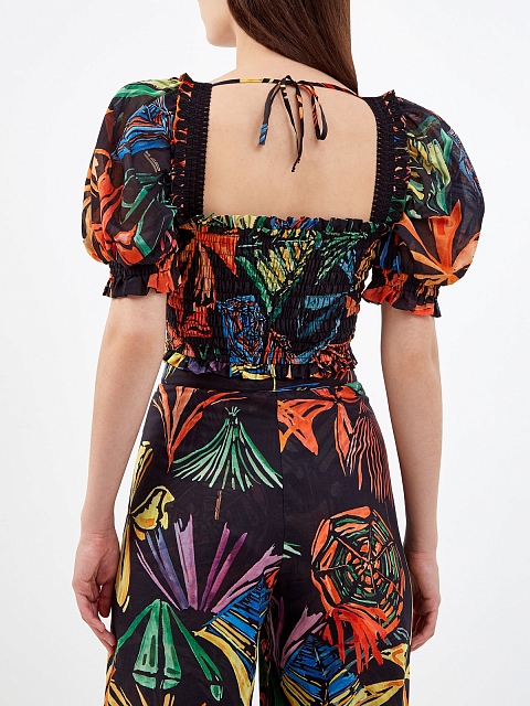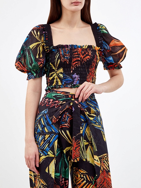 Хлопковый кроп-топ Georgia с объемными рукавами
