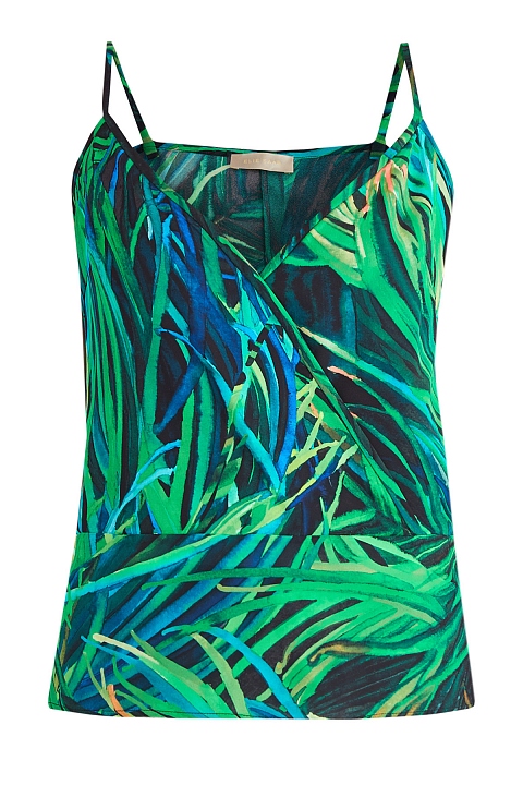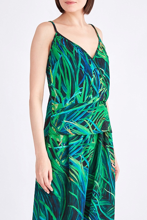 Топ из летящего шелка с набивным принтом в тропическом стиле