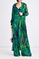 Изящный женский топ из весенне-летней коллекции Elie Saab выполнен из летящего шелка с набивным принтом в тропическом стиле в цветовой гамме от ультрамаринового и изумрудного до натурального оливково-коричневого. Модель с изящным V-образным вырезом декольте и кроем на запах дополнена вытачками для посадки по фигуре. Тонкие бретели и свободный силуэт создают ассоциацию с актуальным бельевым стилем. Сделано в Италии.