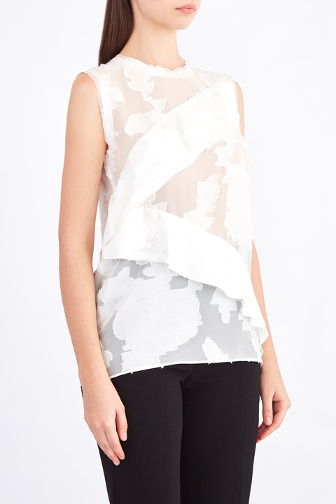 Топ из прозрачного шелка с жаккардовыми цветочными аппликациями