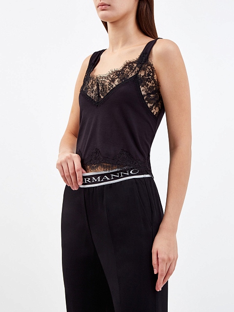 Элегантный топ в черном цвете от Ermanno Firenze создан из мягкого хлопка, волокна эластана в составе облегчают уход за изделием. Отделка из невесомого кружева подчеркивает присущий бренду женственный стиль. Детали: широкие бретели, модель без рукавов.
