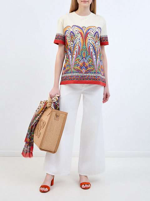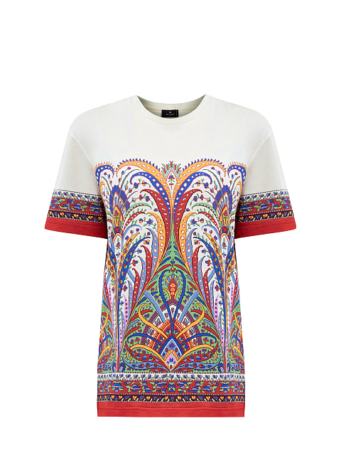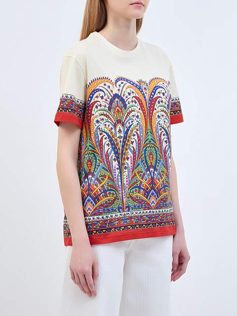 Футболка из хлопка джерси с флористическим принтом в этническом стиле