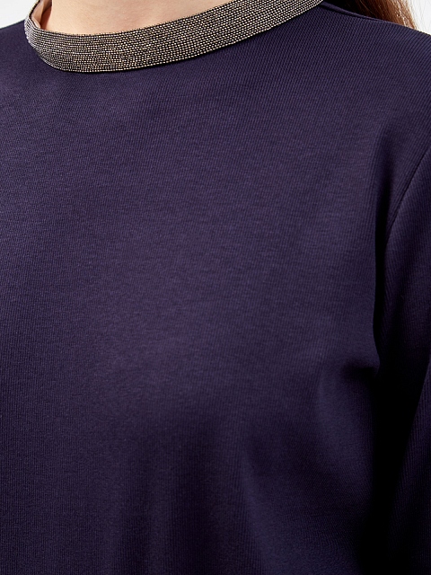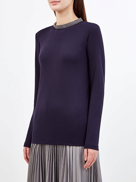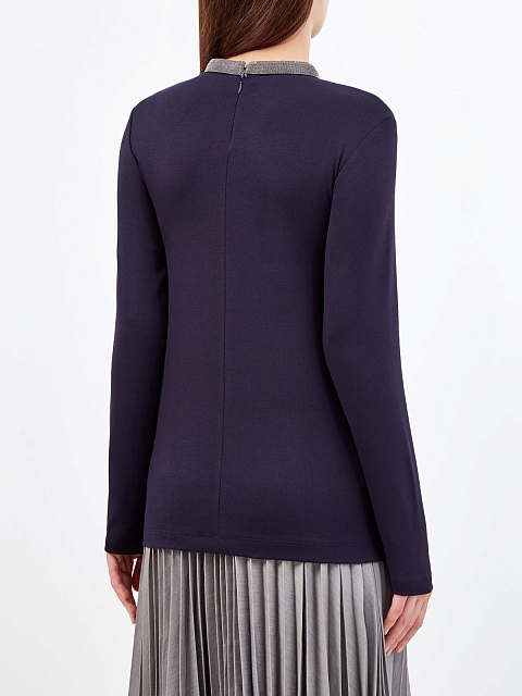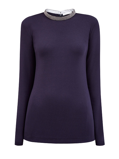 Базовый лонгслив от Fabiana Filippi создан в лаконичном оттенке индиго. Мягкая хлопковая ткань в рубчик обеспечивает посадку точно по фигуре. Изысканный акцент вносит ворот с мерцающей вышивкой бусинами ювелирной огранки. Детали: длинные рукава, потайная застежка на молнию на спинке. Сделано в Италии.