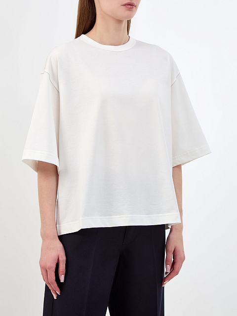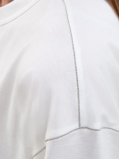 Хлопковая футболка-oversize с ювелирной цепочкой и рукавами ¾
