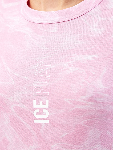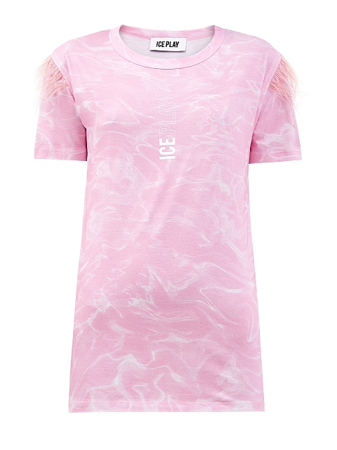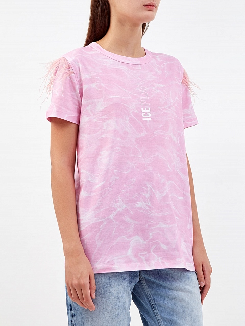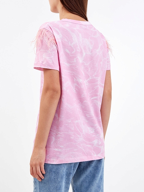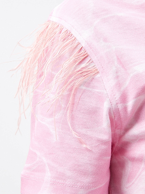 Эффектная футболка с мраморным принтом и перьями