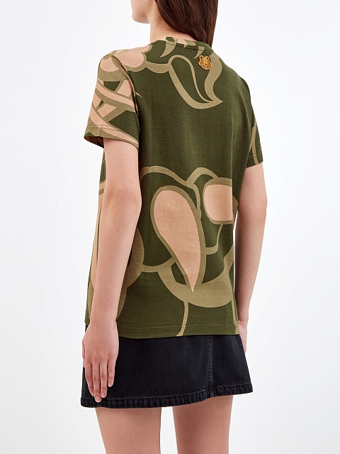 Стильная женская футболка от Kenzo вошла в эксклюзивную коллекцию KENZO x KANSAIYAMAMOTO. Модель в бежево-зеленой гамме из органического хлопка идеально подходит для создания повседневных образов. Макро-принт Trois Tigres подчеркивает оригинальный стиль изделия. Детали: патч с логотипом бренда, круглый вырез горловины, свободный крой.