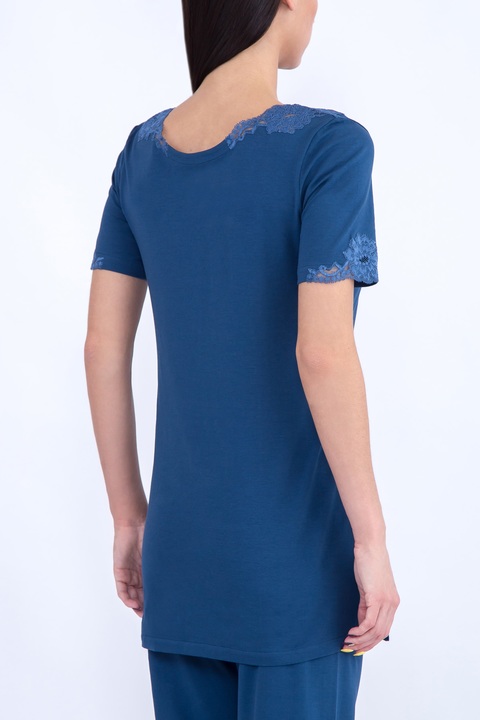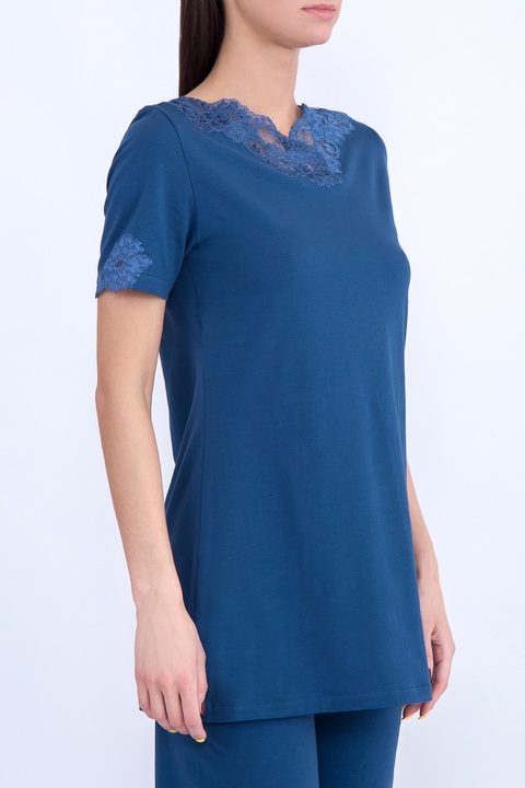 Комфортная женская футболка SOFT' La Perla с короткими рукавами и округлым вырезом горловины, выполненная из плотного хлопкового джерси с мягкой матовой поверхностью. Модель украшена цветочным кружевом Leavers в тон. Сделано в Италии.