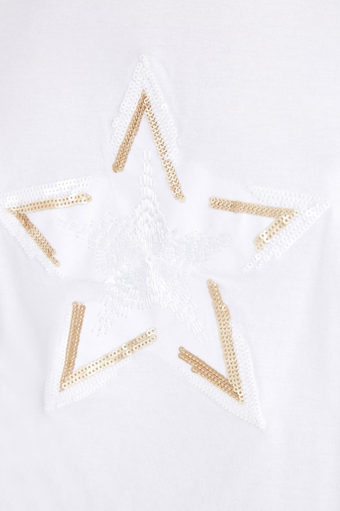 Футболка из хлопкового джерси с вышивкой в виде звезды из пайеток