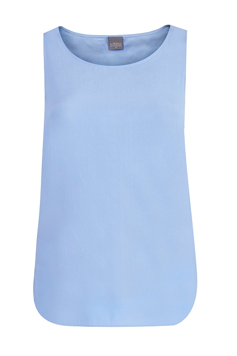 Лаконичный топ свободного кроя от Lorena Antoniazzi создан из чистого шелка в пастельном голубом оттенке с благородным жемчужным блеском по поверхности. Фирменный стиль подчеркивает миниатюрная деталь в виде звезды на спинке. Детали: асимметричные нижние кромки, широкие бретели, вытачки для посадки по фигуре. Сделано в Италии.