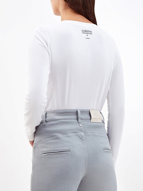 Базовый лонгслив от Lorena Antoniazzi выполнен из хлопкового джерси в белоснежном оттенке. Сверкающий акцент вносит отделка из кристаллов Swarovski, а аппликация на спинке придает образу нотку небрежности. Слегка удлиненный облегающий силуэт с длинными рукавами делает модель максимально универсальной. Сделано в Италии.