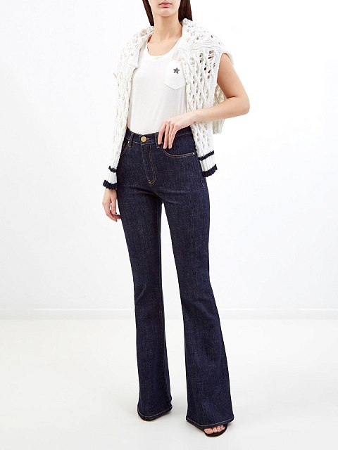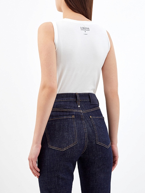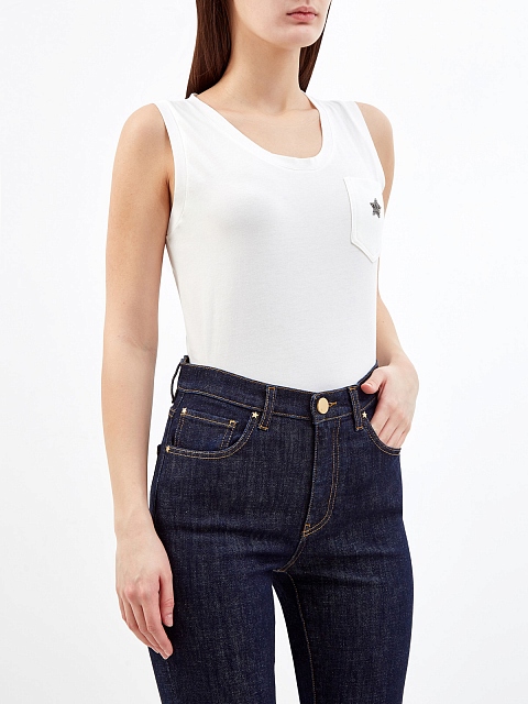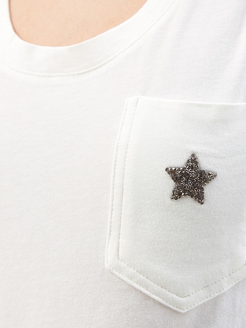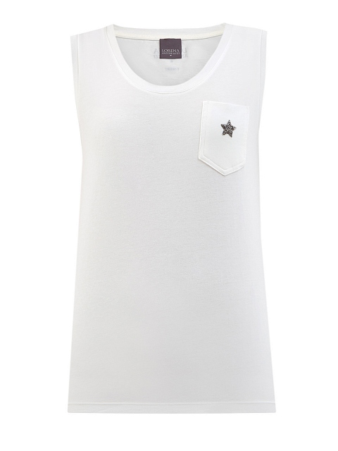 Базовый топ облегающего кроя от Lorena Antoniazzi создан из мягкого хлопкового джерси в белом цвете. Фирменный стиль подчеркивает миниатюрная деталь в виде звезды из кристаллов Swarovski на накладном кармане. Сделано в Италии.