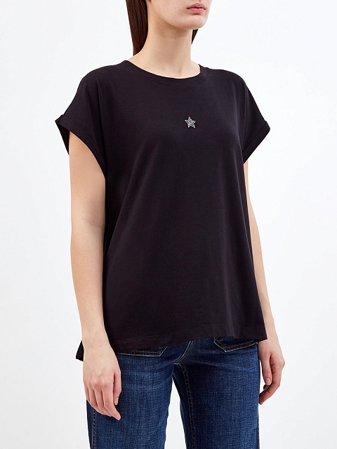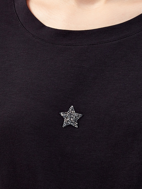 Черная футболка из хлопка джерси с символикой из кристаллов Swarovski