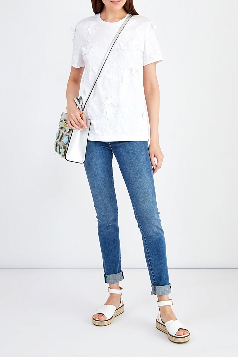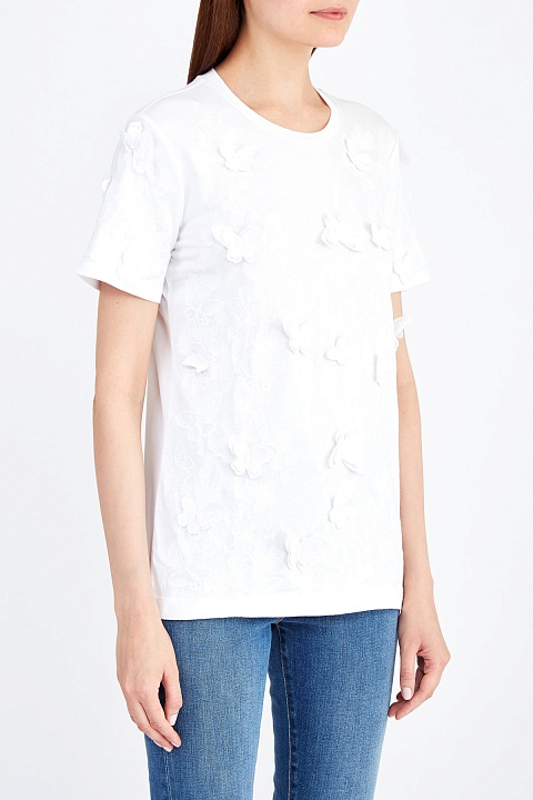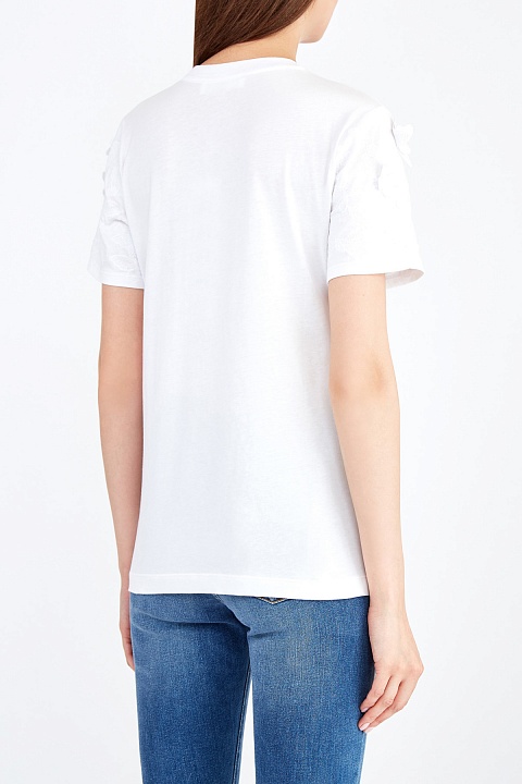 Футболка из хлопка с вышитым принтом и кружевными аппликациями