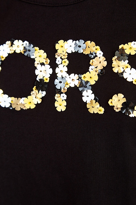 Однотонная футболка из хлопка с расшитой пайетками монограммой