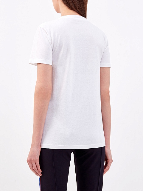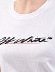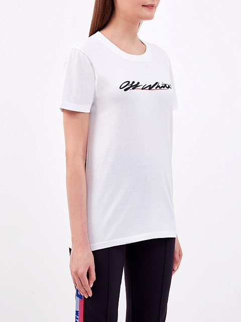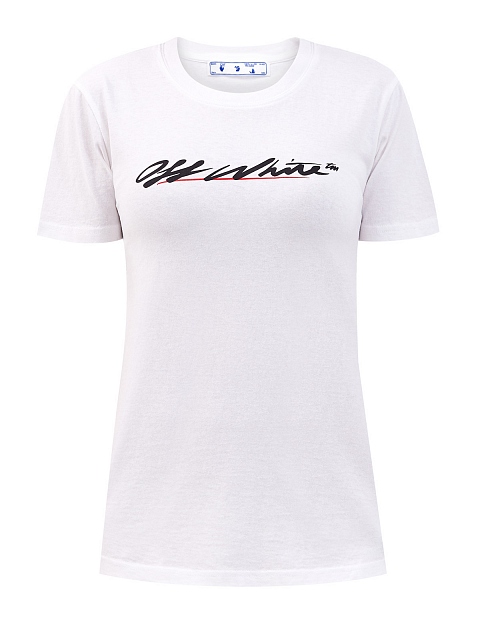 Минималистичная женская футболка от Off-White выполнена в белоснежном оттенке. Модель из дышащего хлопкового джерси станет идеальной основой для создания повседневных образов. Контрастный принт в стиле леттеринг на передней планке подчеркивает присущую бренду динамику. Детали: круглый вырез горловины, короткие рукава.